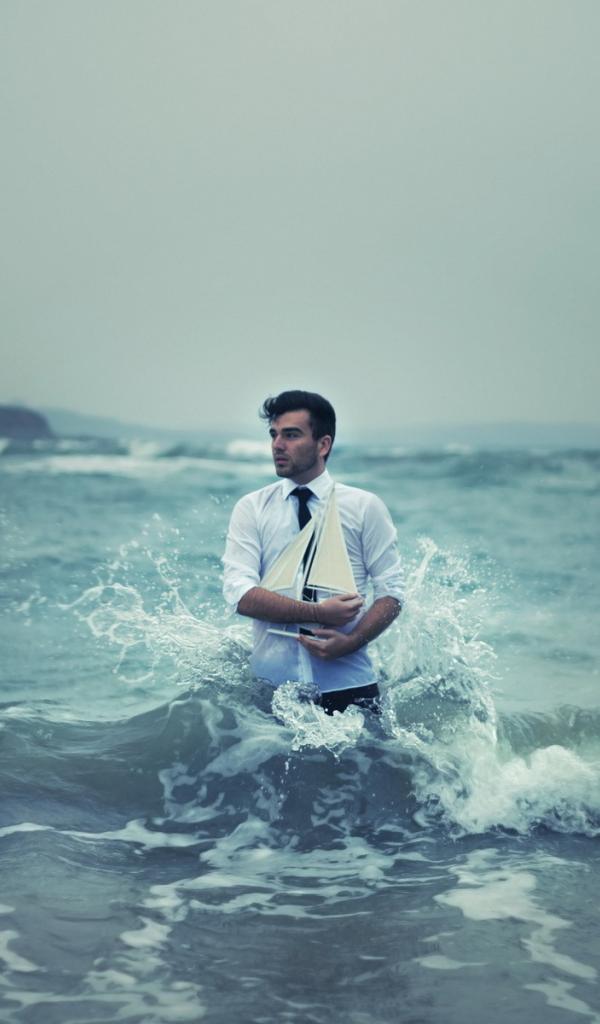 Wallpaper Man with ship in the sea