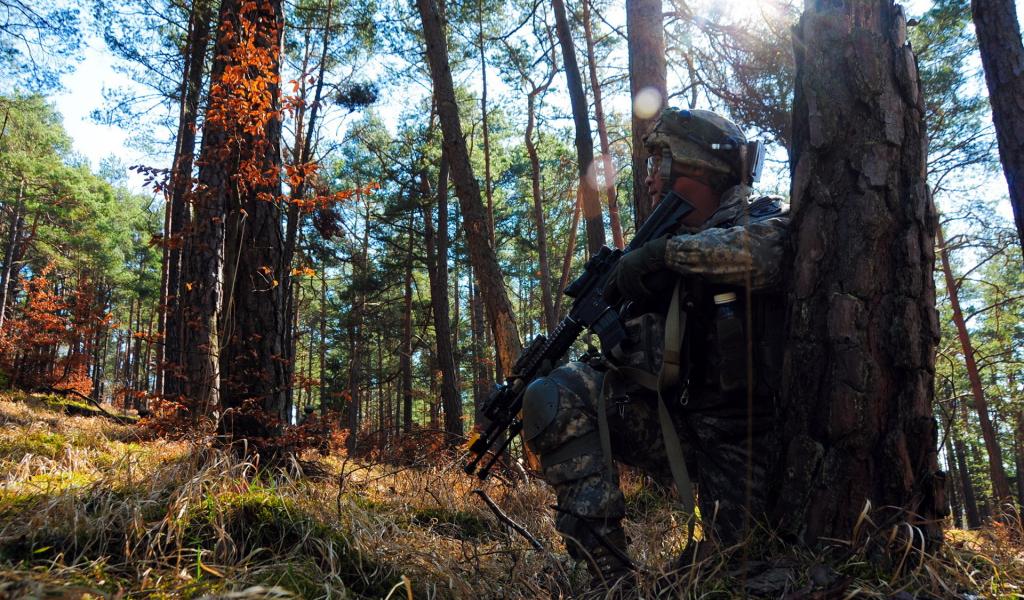 Wallpaper Soldier hiding behind a tree