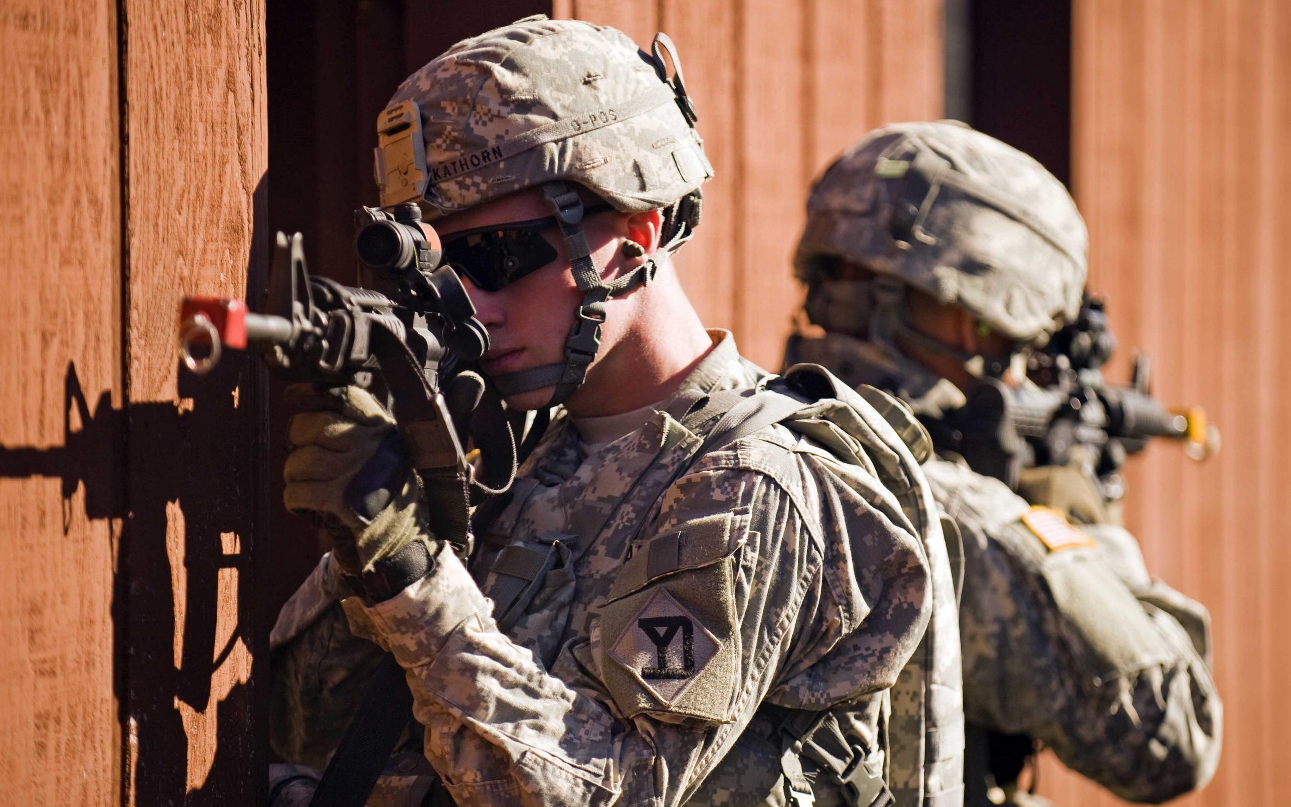 Wallpaper The soldiers point their rifles