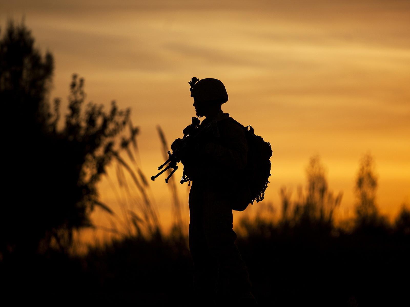 Wallpaper The silhouette of a soldier