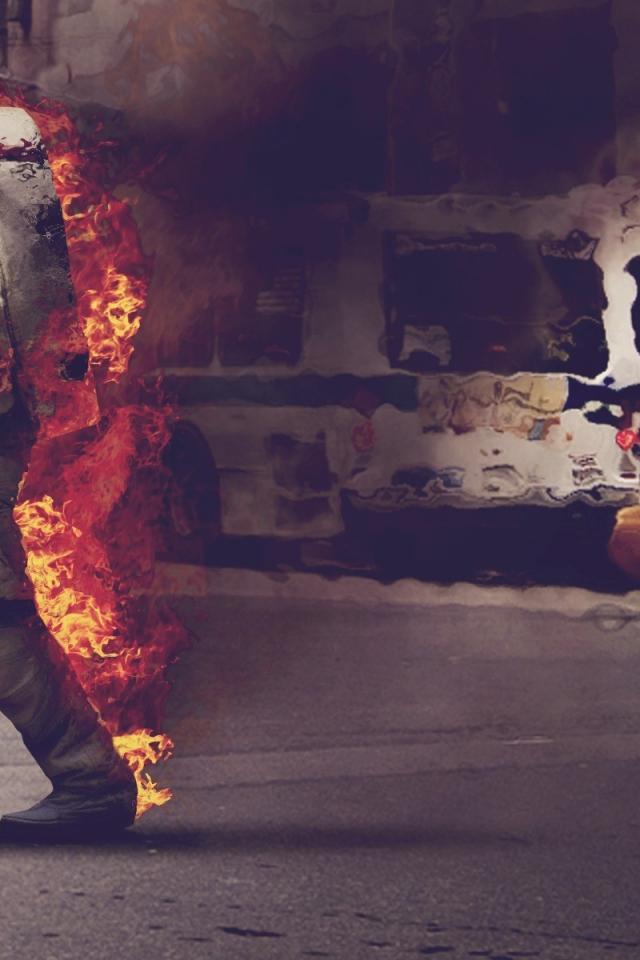 Wallpaper A firefighter at work