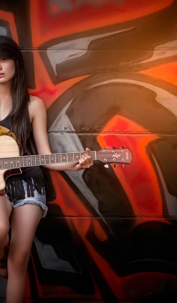 Wallpaper Japanese woman with a guitar