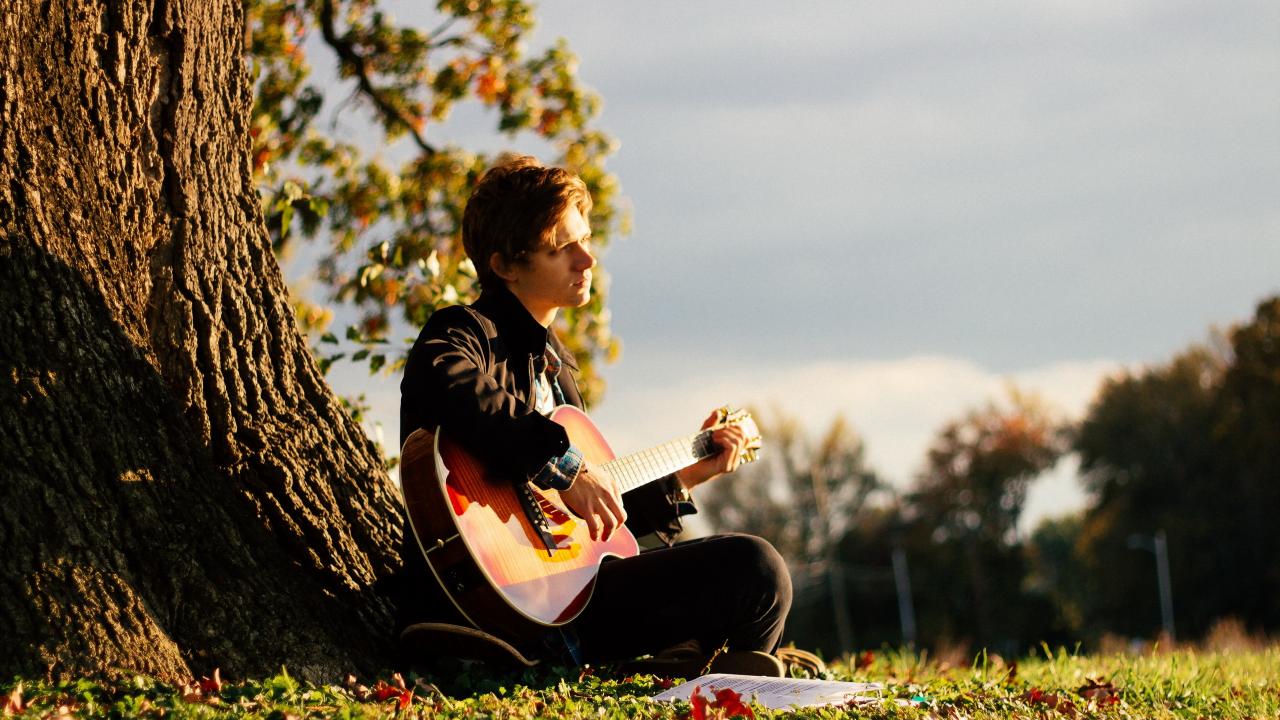 Wallpaper The guy with a guitar in a tree