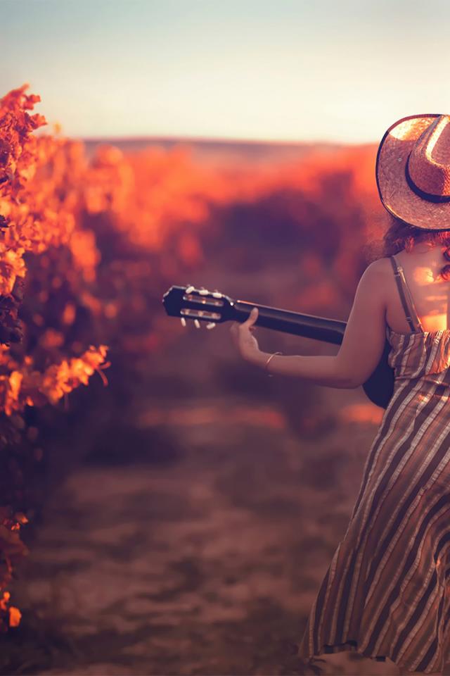 Wallpaper Girl with a guitar in the vineyard