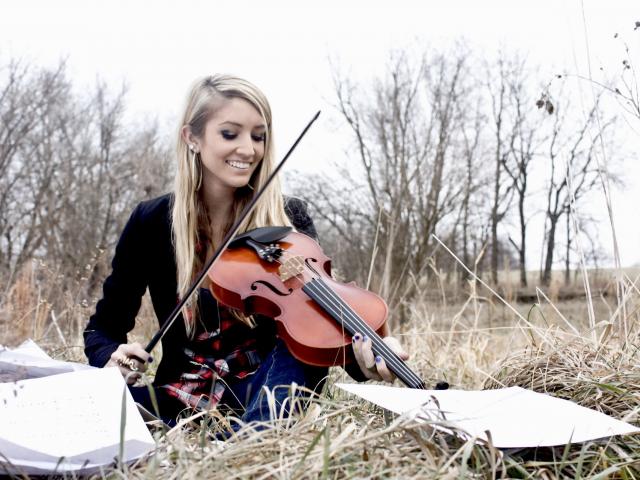 Wallpaper The girl with the violin on the nature