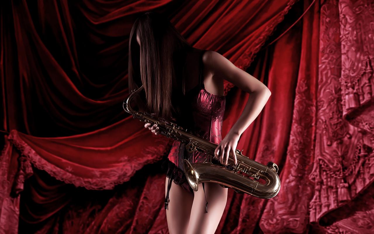 Wallpaper Girl with saxophone