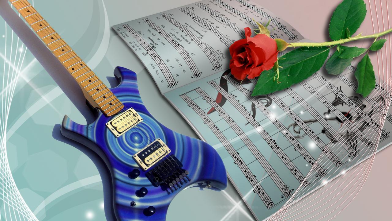 Wallpaper Guitar and rose on the notes