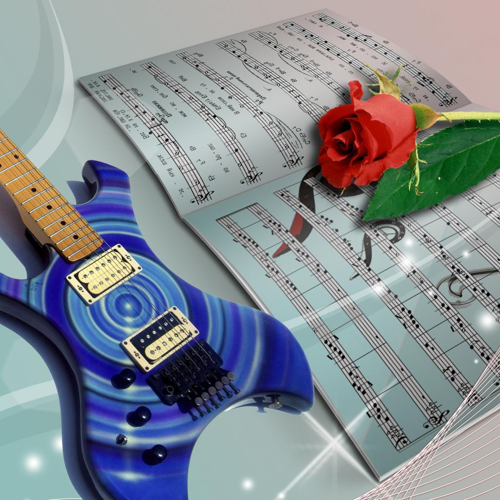 Wallpaper Guitar and rose on the notes