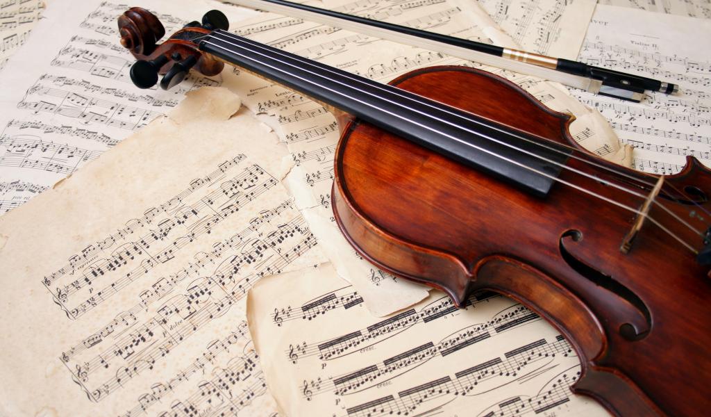 Wallpaper Leaves, Red rose, rose Petals, violin, notes