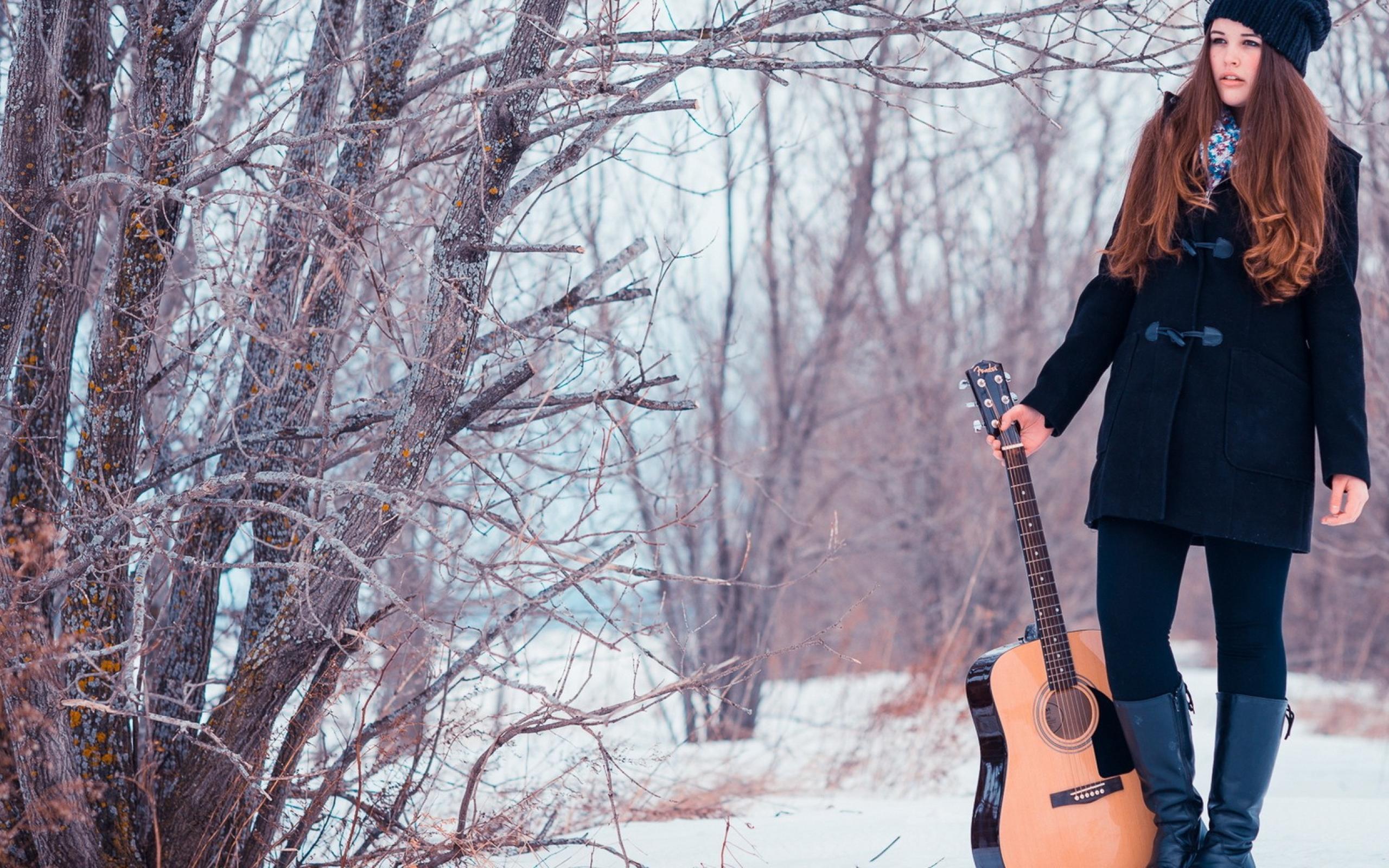 Wallpaper Girl with a guitar in the park