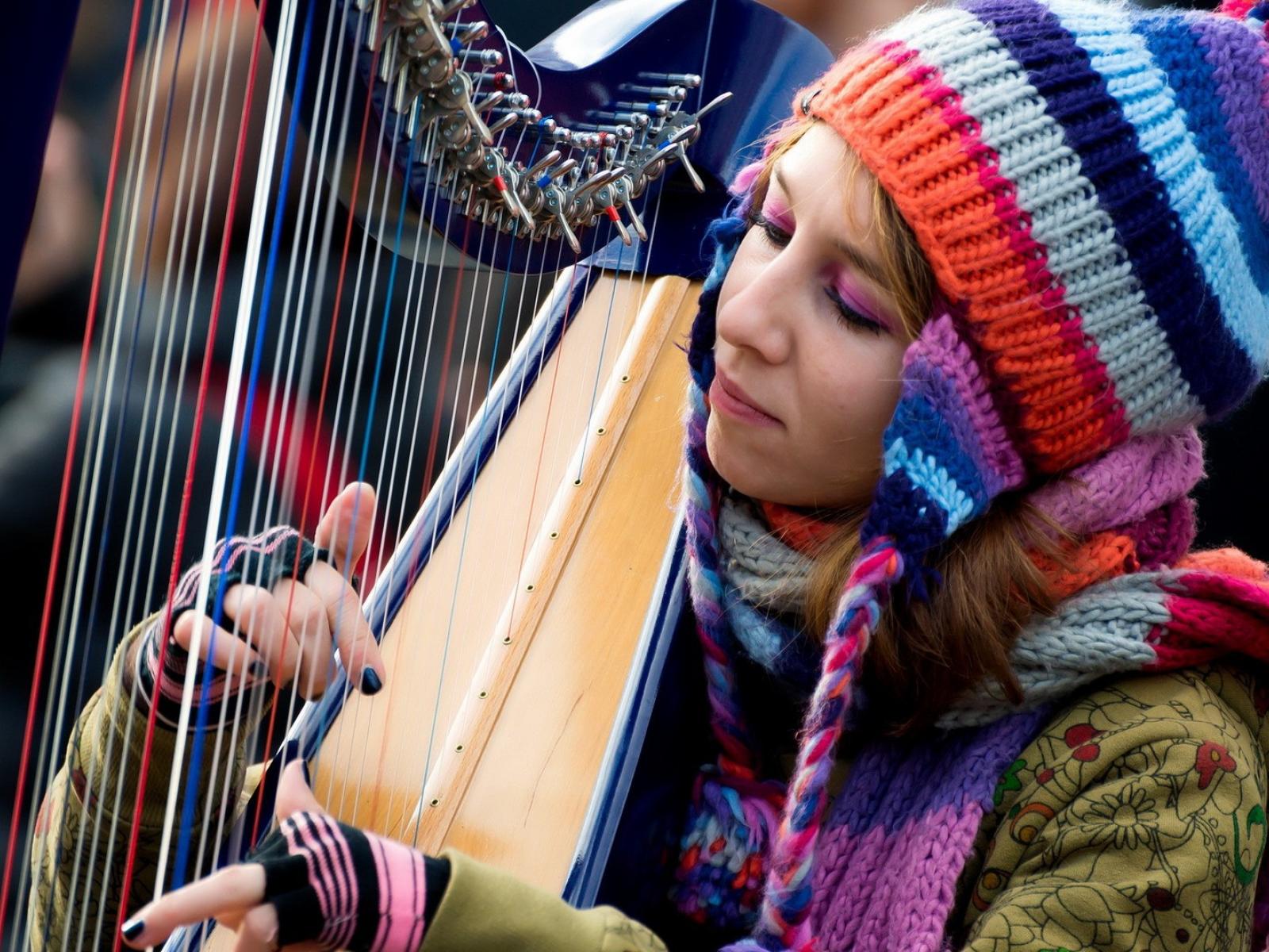 Wallpaper Woman and harp