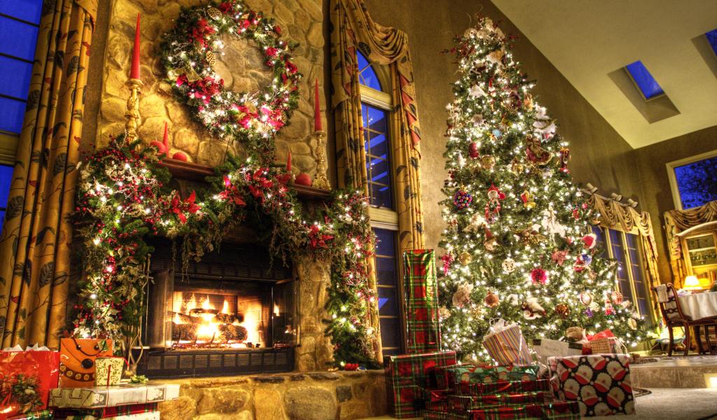 Wallpaper Toys, Lights, Christmas tree, fireplace, room