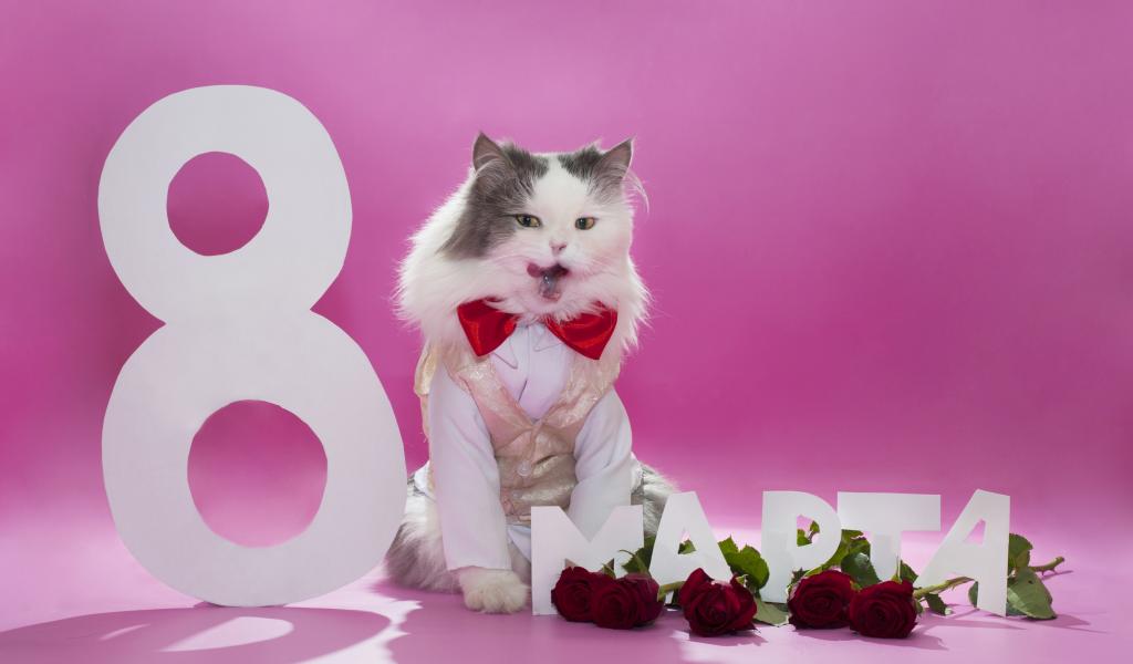 Wallpaper Cute cat congratulating on March 8