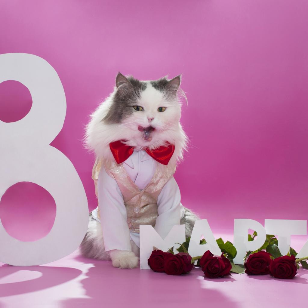Wallpaper Cute cat congratulating on March 8