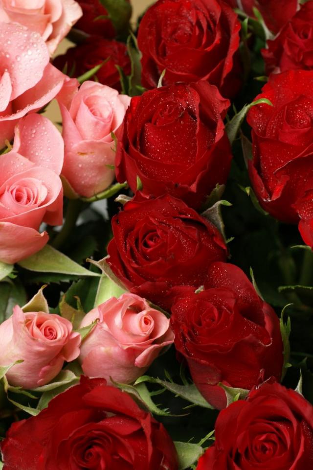 Wallpaper Red roses on March 8 in a bouquet with pink