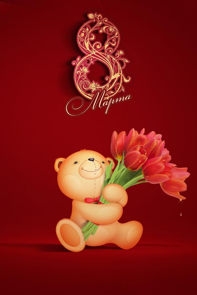Wallpaper Teddy bear with a bouquet on March 8