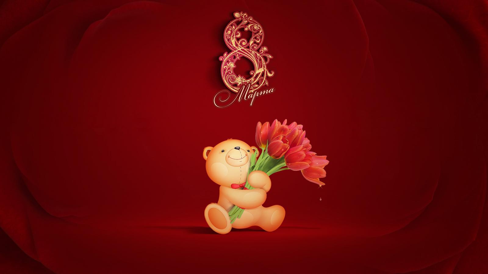 Wallpaper Teddy bear with a bouquet on March 8