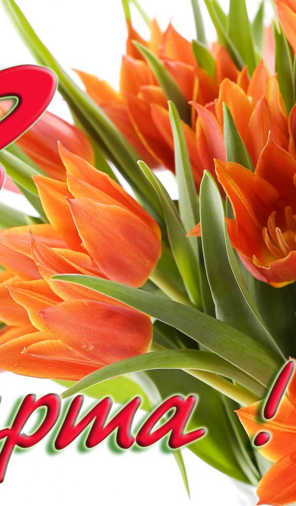 Wallpaper Postcard with a beautiful bouquet of tulips on March 8