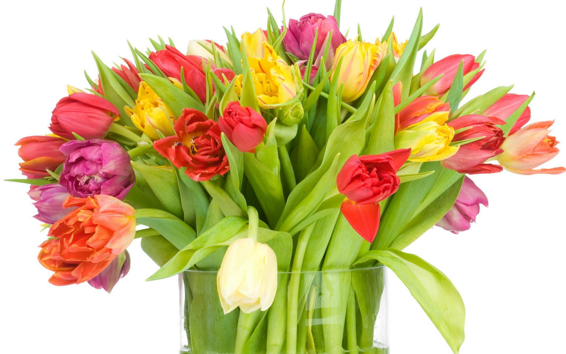 Wallpaper Large bouquet of tulips for girl on March 8