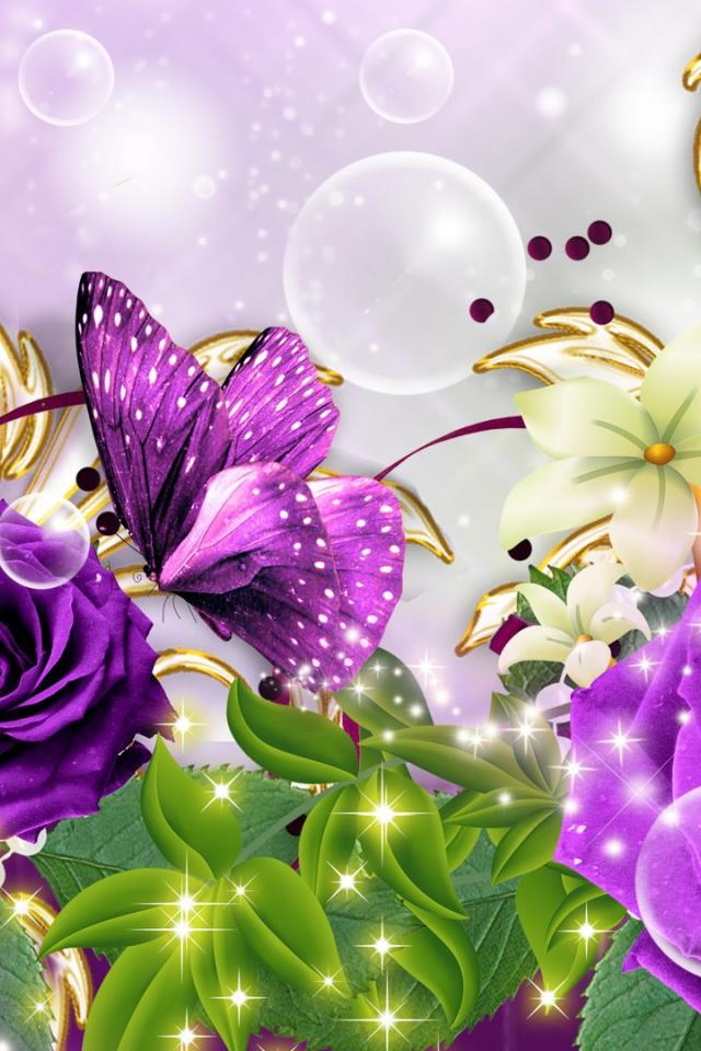 Wallpaper Purple roses and butterfly, picture on March 8