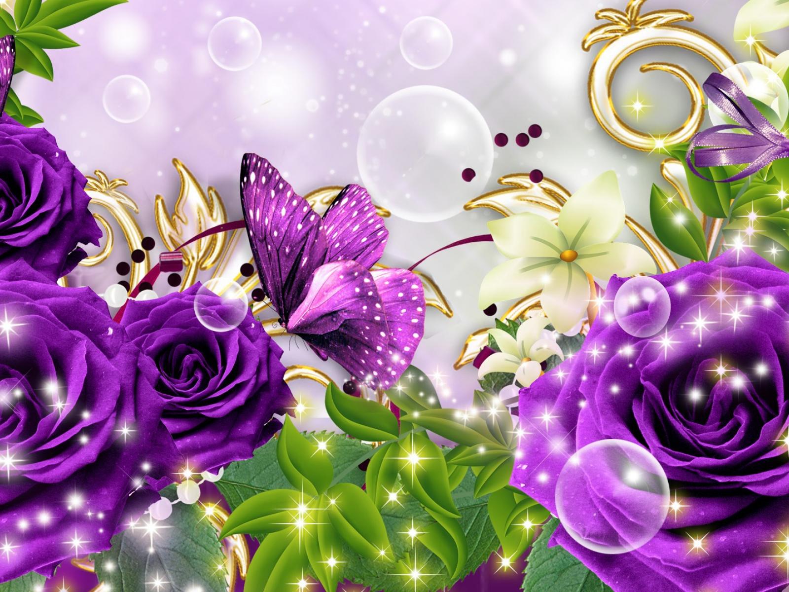 Wallpaper Purple roses and butterfly, picture on March 8