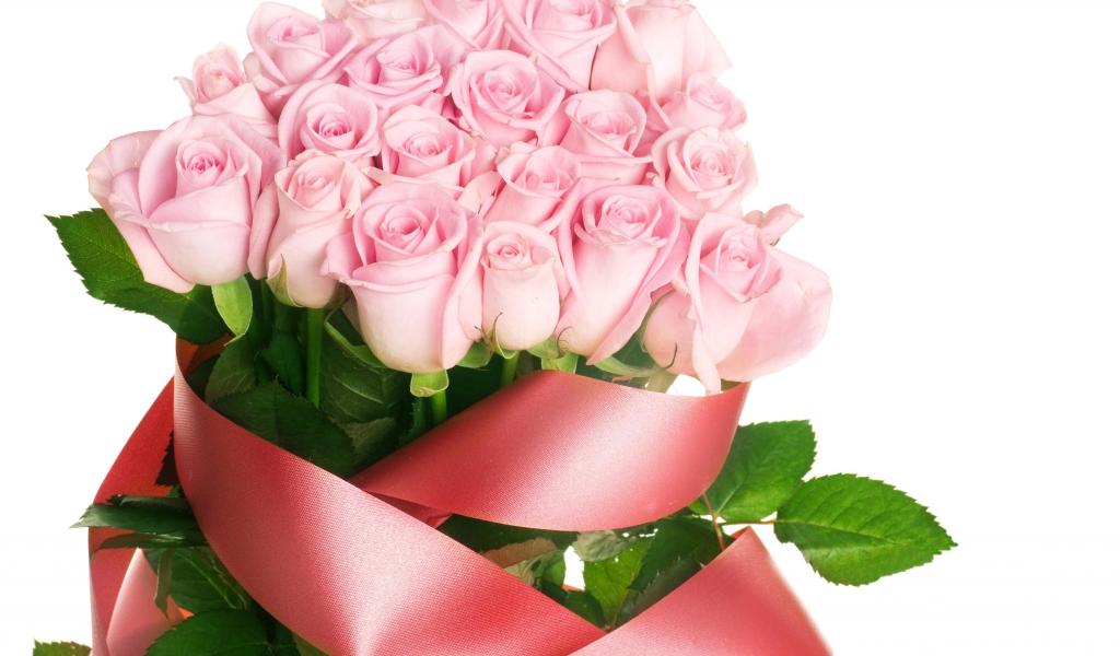 Wallpaper Bouquet of pink roses to girls on March 8