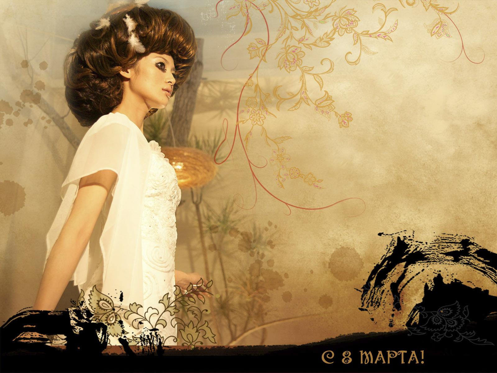 Wallpaper Beautiful bouquets of roses to girls on March 8