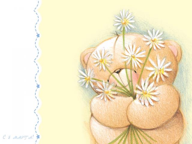 Wallpaper Teddy bear with a bouquet on March 8