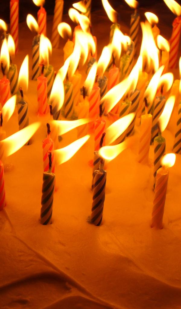 Wallpaper Colored candles and cream birthday cake