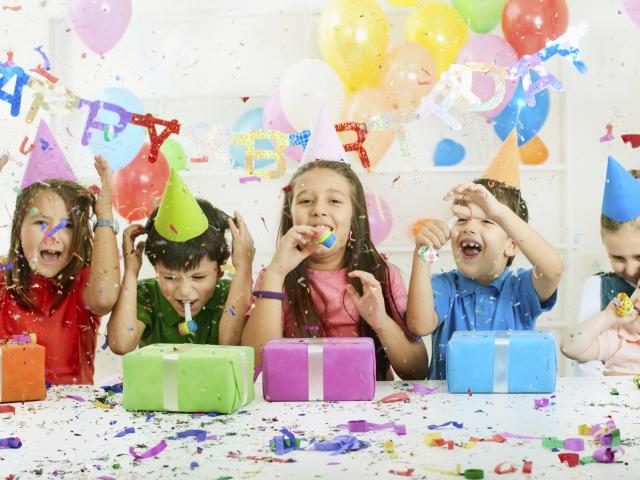Wallpaper Congratulation with gifts on wooden table on birthday