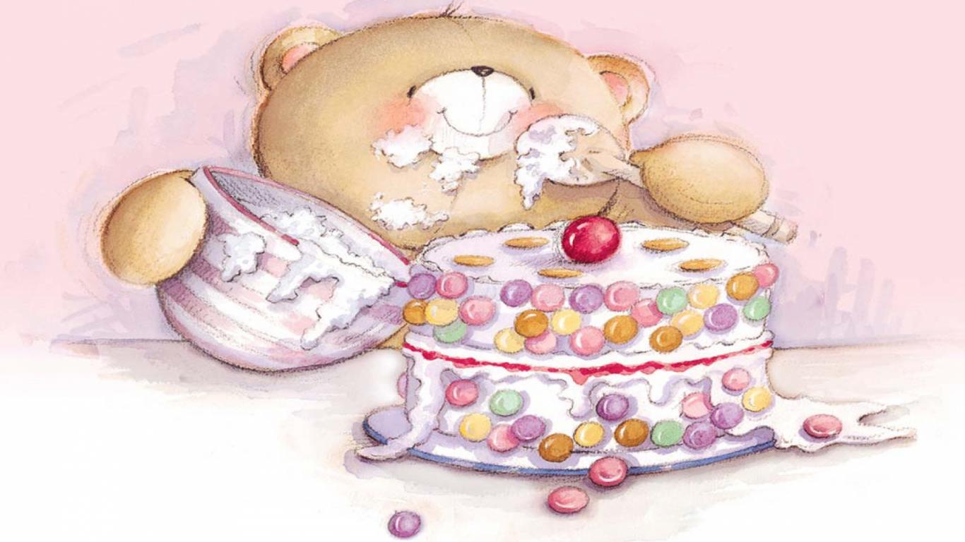 Wallpaper Teddy bear eating a delicious cake for birthday