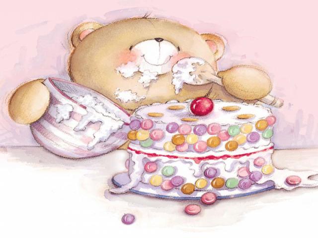 Wallpaper Teddy bear eating a delicious cake for birthday