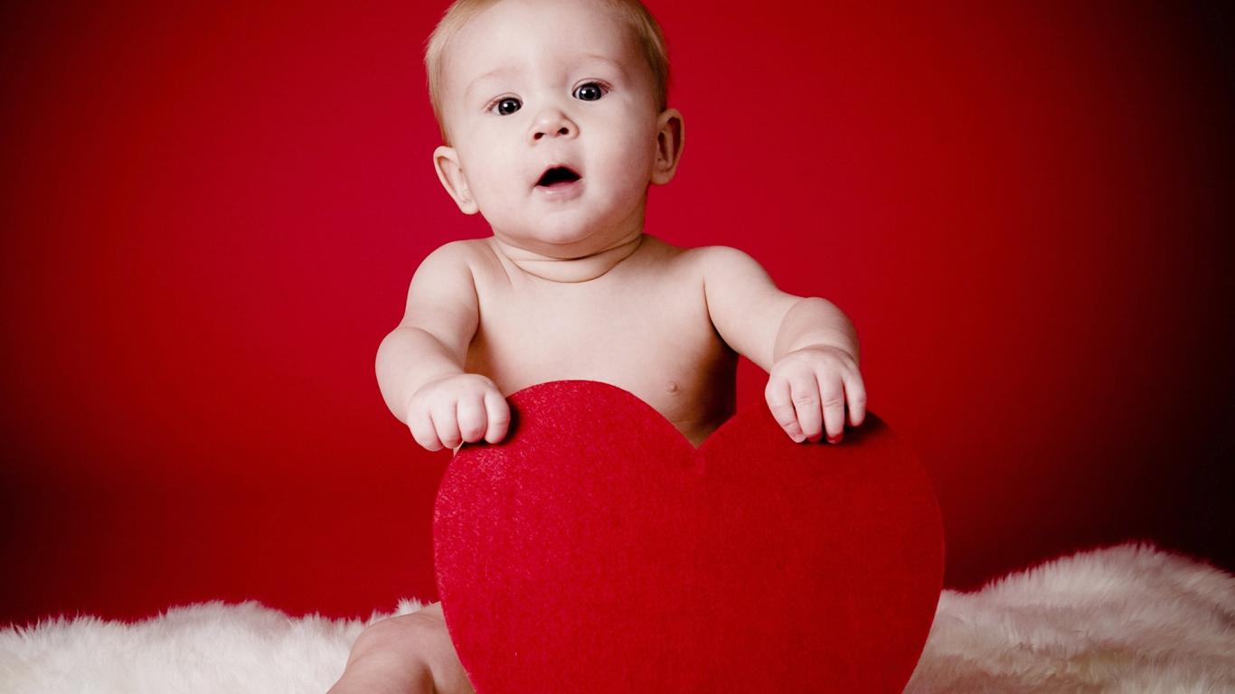 Wallpaper Kid with a heart on Valentine`s Day February 14