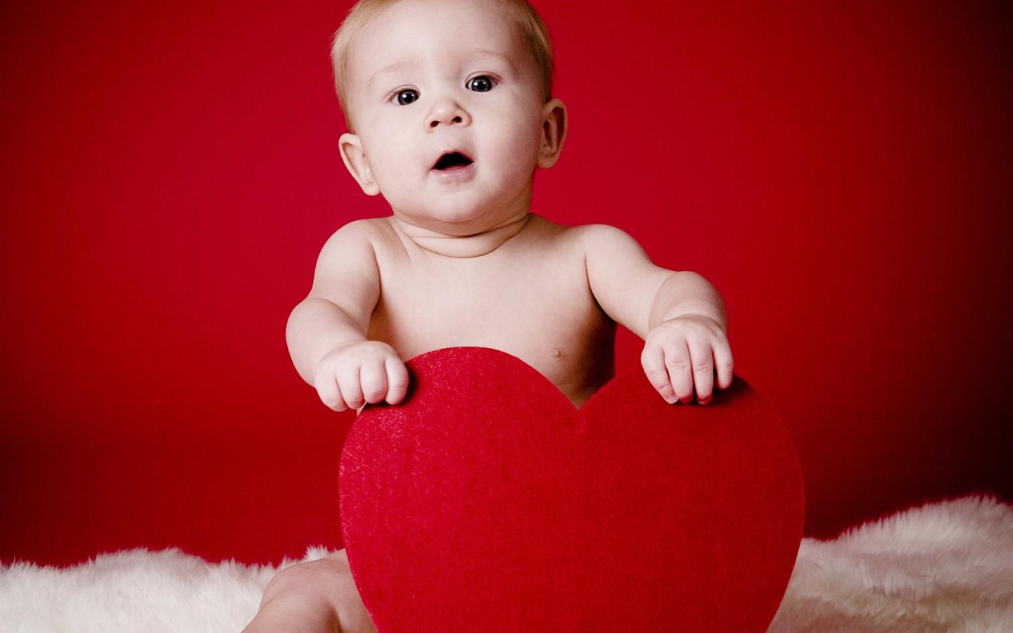 Wallpaper Kid with a heart on Valentine`s Day February 14