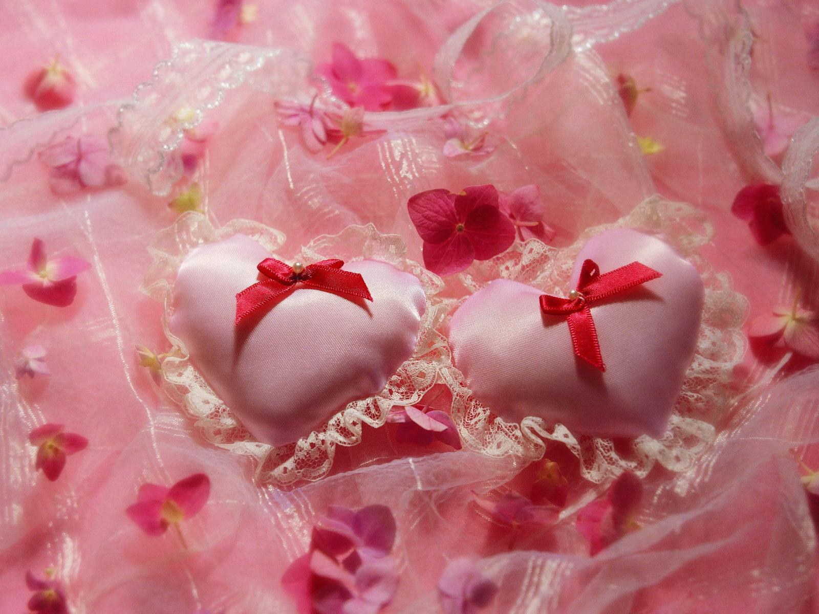 Wallpaper Two pink hearts on Valentine`s Day February 14