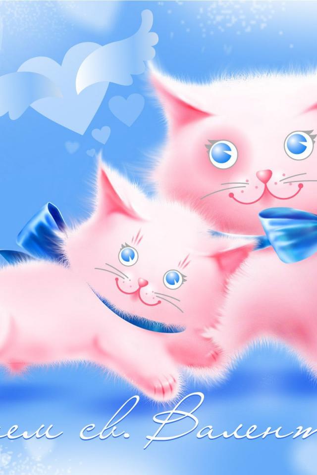 Wallpaper Two pink cat on Valentine`s Day February 14