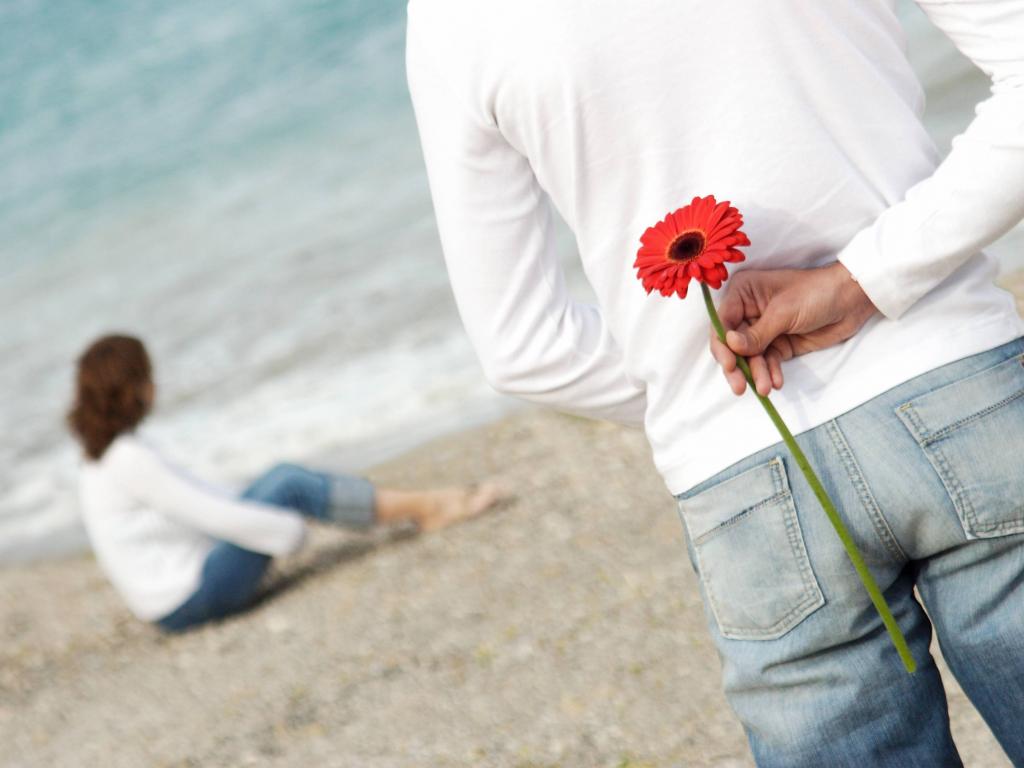 Wallpaper Lovers on the beach on Valentine`s Day February 14