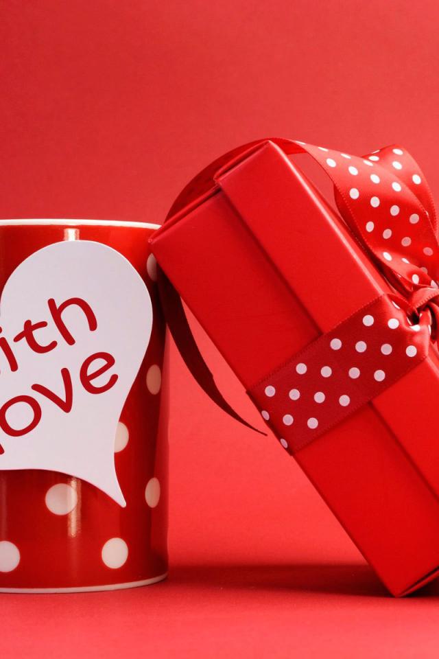 Wallpaper Cup with a gift on Valentine`s Day February 14