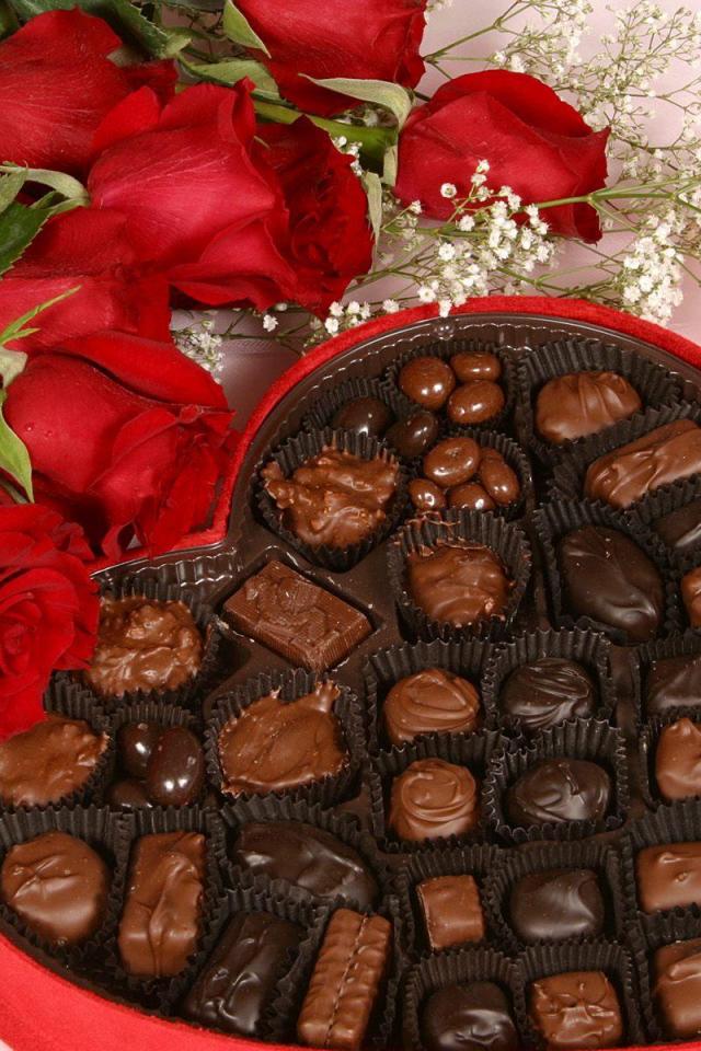Wallpaper Chocolates and roses for Valentine`s Day