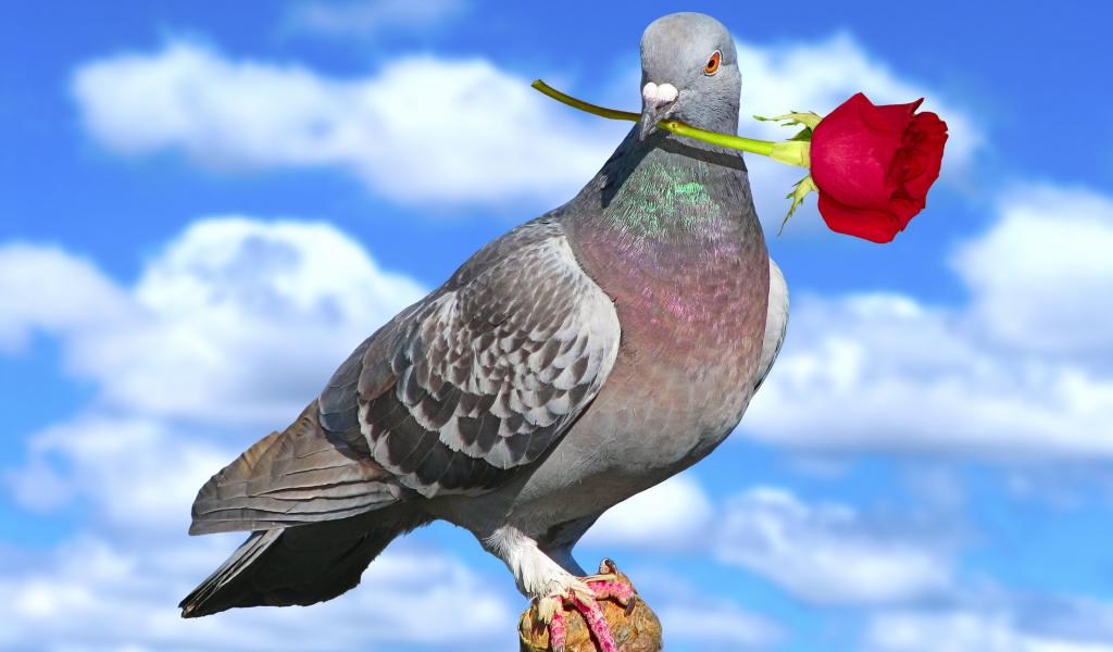 Wallpaper Dove with a rose on Valentine`s Day