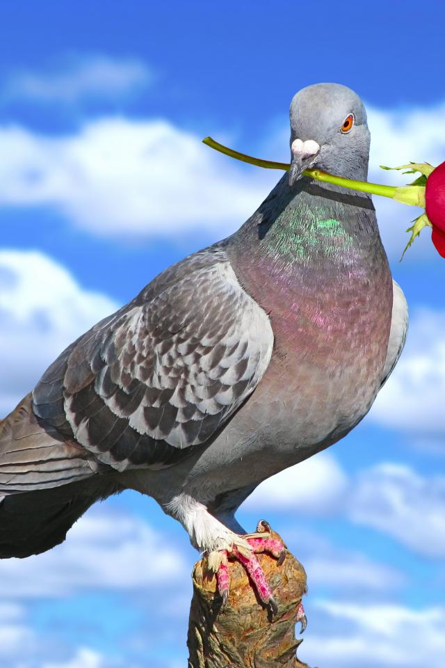Wallpaper Dove with a rose on Valentine`s Day