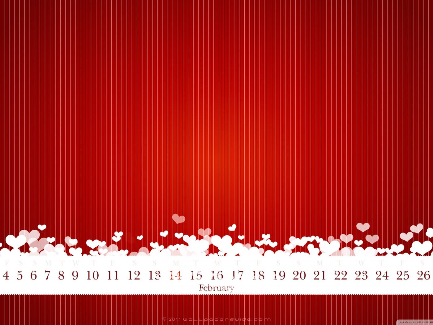 Wallpaper Hearts, February, Calendar