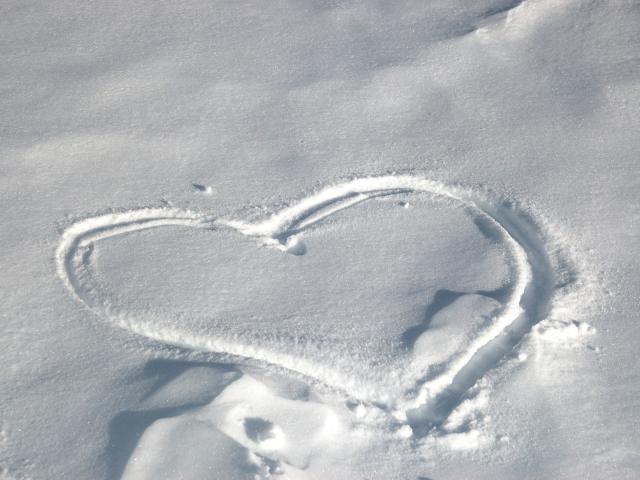 Wallpaper Heart on the snow on Valentine`s Day February 14