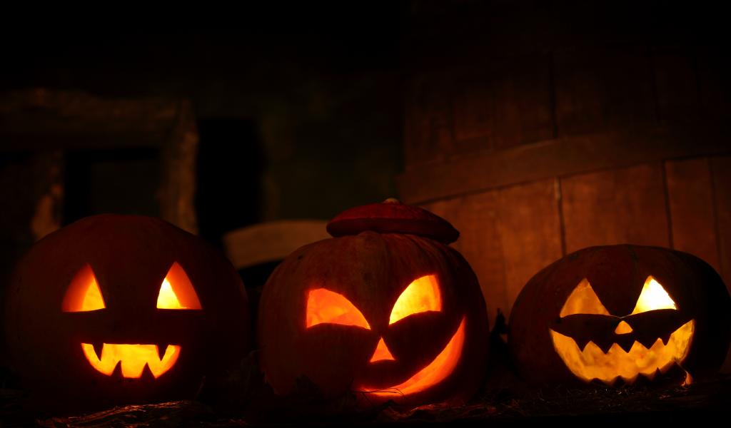 » Wallpaper Three pumpkins with candles