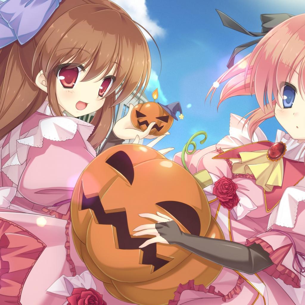 Wallpaper Girls with toys pumpkin