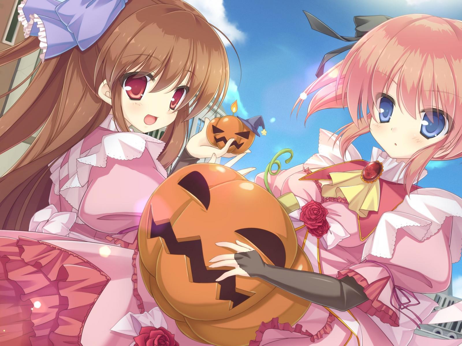 Wallpaper Girls with toys pumpkin