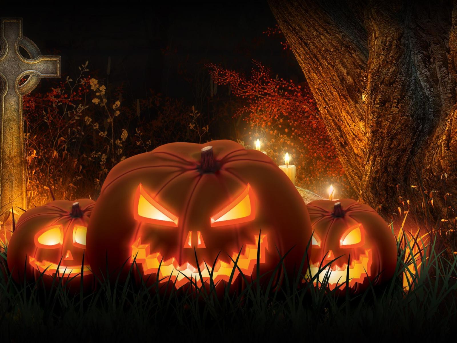 Wallpaper Pumpkin with candles on the cemetery
