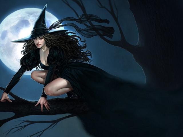 Wallpaper Witch in the tree under the moon