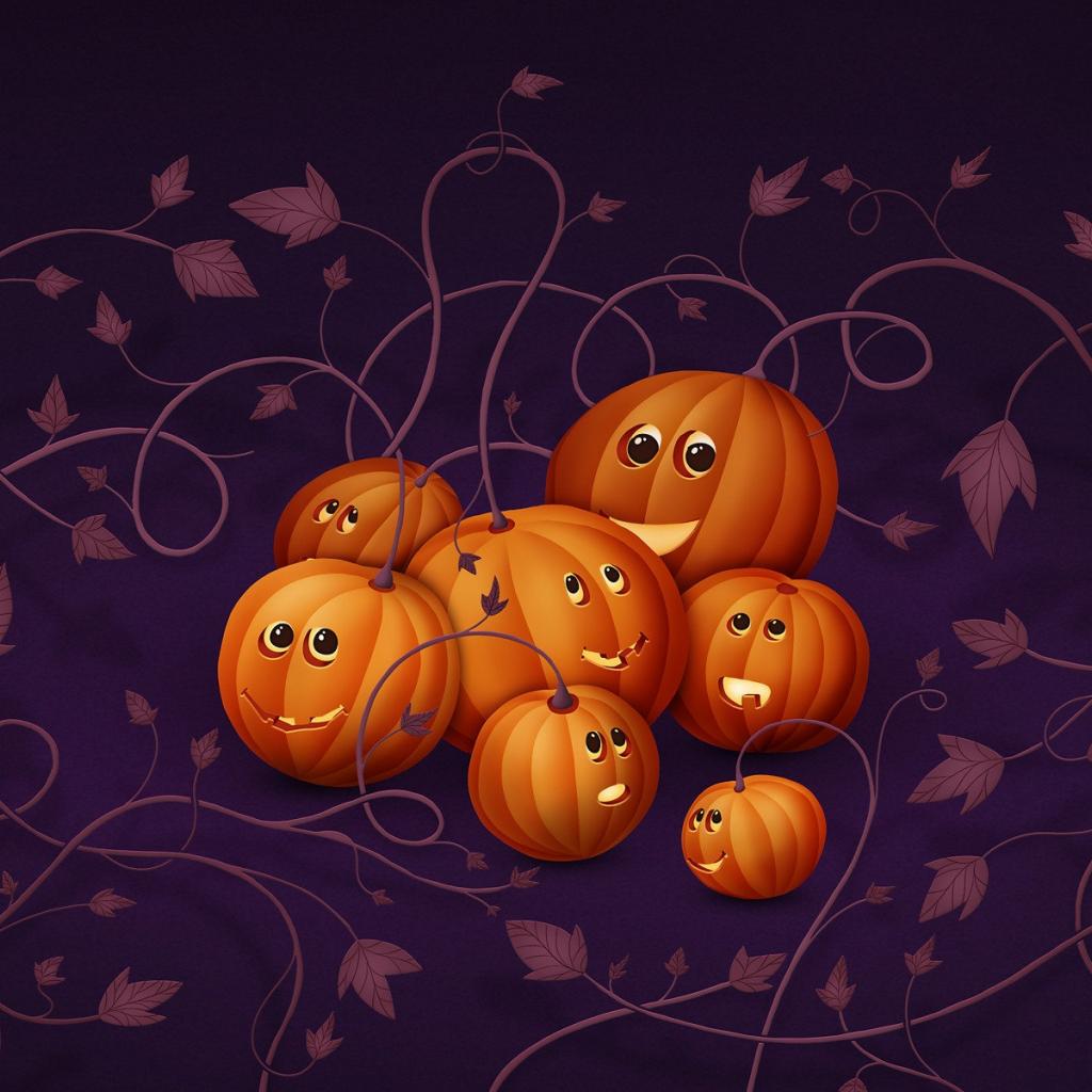 Wallpaper Halloween drawn pumpkins