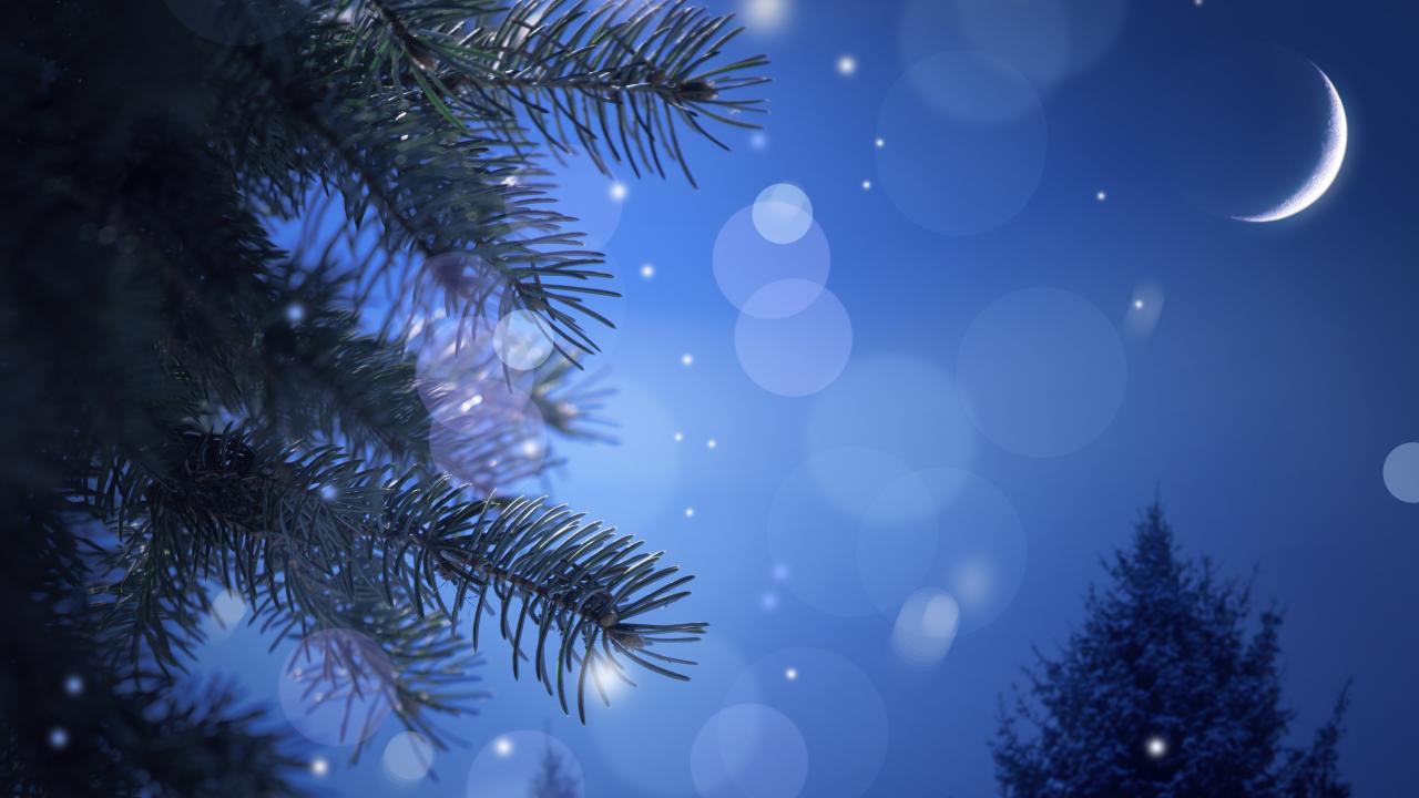 Wallpaper New year tree in night woods